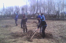 В рамках акции "Читый двор" на пришкольном участке учащиеся школы посадили 15 кустов смородины, привели в порядок школьный двор, подъездную дорогу к школе, посадили цветы.