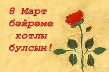 8 - Март 07.03.2017 Мәктәптә бүген җир йөзендәге иң матур затларга – сөекле кызларыбызга, хөрмәтле хатын-кыз укытучыларыбызга, кадерле, иң газиз, иң якын кешеләргә- әниләргә багышланган бәйрәм кичәсе булды. Кадерле кызлар, хөрмәтле укытучы апалар, һәрвакыт мәктәпне чиста тотучы, безгә тәмле ашлар пешерүче апаларыбыз! Сезне 8 нче март-Халыкара хатын-кызлар көне белән котлыйбыз!