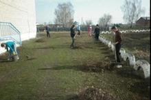 В рамках месячника экологии прошел общешкольный субботник. учащиеся 1-11 классов убирали территорию школы.
