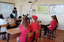 Учащиеся 5-6 классов участвовали в республиканской акции ГТО в школе " Стельба из положения с опорой локтей о стол и супора для винтовки из пневматической винтовки с открытым прицелом".