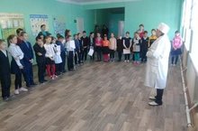На общешкольной линейке заведующая ФАПа Исмагилова Ф. с учащимися 1-11 классов провела беседу о профилактике гриппа.