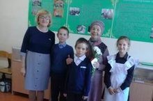 Яруллина З.З. 5 нче сыйныф укучылары белән очрашуга ветеран укытучы Хакова Солтания апаны чакырды. Укучылар аны бәйрәм белән котлап, матур теләкләрен шигырьләр аша җиткерделәр.