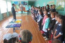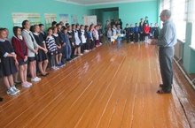 Учитель ОБЖ Ахметов Р.Г. на общешкольной линейке ознакомил с планом работы месячника безопасности детей.