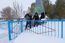 Юнармейцы отряда имени А.Г.Николаева очистили от снега территорию обелиска.