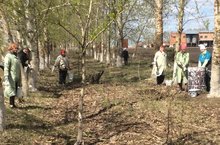 Работники бюджетной сферы работали на побелке деревьев полезащитной полосы. 11.05.2018
