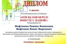 Менделеевск районында " Эти белән бергә! " республика конкурсы узды. Анда Мифтаховлар гаиләсе катнашты. Фәнис Фәриз улы һәм аның "Аленушка" балалар бакчасында тәрбияләнүче кызы Рамина "Гаилә традицияләре"номинациясендә 1 дәрәҗә дипломга ия булдылар. Алар видеоролик күрсәттеләр