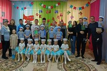 День защитника Отечества в средней группе 21.02.2023 21 февраля 2023 года в средней группе МБДОУ "Алтынчеч" прошёл утренник под названием "Морское путешествие с Котом Матроскиным", куда были приглашены папы, дедушки воспитанников. Праздник начался с красивого выхода с флажками под марш. В подарок дорогим и родным своим дедушкам и папам читали стихи, исполняли песни "Мы солдаты","Мой любимый папа",станцевали танец "Морячка". Юные моряки справились со всеми испытаниями, которые им подготовил Кот Матроскин. А помогали им в этом дедушки и папы, они показали всю свою ловкость, силу и смекалку. После дети поздравили своих пап и вручили подарки, сделанные своими руками. Праздник состоялся, и мир вокруг нас стал чуточку ярче, светлее и добрее! Группа "Лучики" поздравляет всех мужчин с Днем защитника Отечества! Пусть небо над нашей Родиной и всем миром всегда будет только ясным!