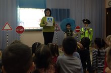 В МБДОУ " Алтынчеч" провели с воспитанниками занятие "Дозорные дорог" по безопасности дорожного движения ведущий специалист Буинского отделения ОПГУ г. Казани ГБУ " БДД" Мирзакова С. М и муниципальный служащий по БДД Санатуллина Э. И. 29.01.2019
