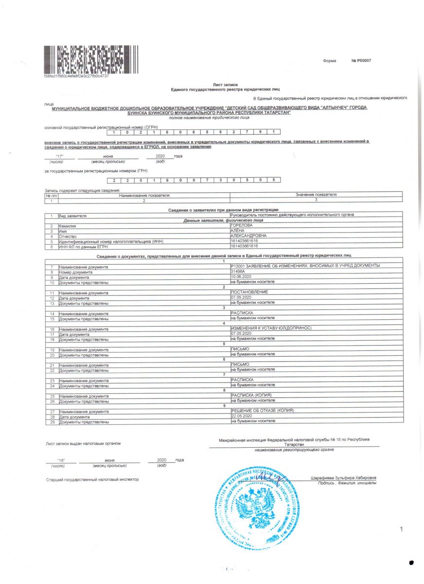 Лист изменений №2 в Устав от 17.06.2020 г.