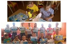 В рамках тематической недели "Солнце, воздух и вода - наши лучшие друзья!" в подготовительной группе "Пчелки" была выполнена итоговая работа на тему: "Мне сниться море". Работа проходила в два этапа: нарисовали море, небо, закат нетрадиционными методами (по мокрому и губкой), выполнили аппликацию дельфины из круга.
