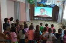 В детском саду "Ромашка" в летний период педагогами организован кинозал. Дети с большим интересом смотрят мультипликационные фильмы как на русском , так и на татарском языках.