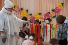 Дети пришли на представление нарядные мальчики в костюмах гномиков, а девочки в костюмах снежинок в предвкушении праздника. И их надежды оправдались. Воспитатели и все герои, участвовавшие в новогоднем представлении, проявили себя хорошими артистами, показав всё своё творческое мастерство, артистизм, задор и организаторские способности. Им пришлось перевоплотиться в разных героев: Зиму, Бабу-Ягу, Кота в сапогах, Деда мороза, Снегурочк.