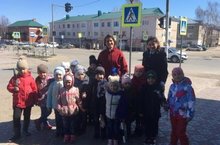 Сегодня воспитанники старшего дошкольного возраста МБДОУ «Солнышко» ,согласно плана работы по предотвращению детского дорожно- транспортного травматизма совершили экскурсию на перекрёсток. . Ребята под руководством воспитателей Арефьевой Н.А., Дубковой И.А. и инспектора по делам несовершеннолетних Галимовой Н.М. по ходу движения экскурсии внимательно изучали дорожные знаки, отмечали какой вид транспорта проезжает мимо, на перекрестке наглядно увидели работу светофора – для транспорта и для пешеходов. Кроме того, закрепили безопасный маршрут вокруг детского сада и названия прилегающих улиц.