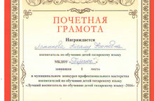 Муниципальный конкурс профессионального мастерства «Лучший воспитатель по обучению татарскому языку - 2016» 29.11.2016