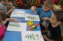 Аппликация в разновозрастной старше - подготовительной группе "Бусы на елку" 19.12.2016