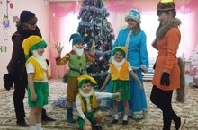 Первыми к нарядно украшенной ёлке пришли ребятишки разновозрастной средней группы. Встреча с главными героями праздника - Дедом Морозом и Снегурочкой была для них незабываемой, они с особым удовольствием пели, читали стихи и танцевали. Ребятишки, учавствовавшие в новогоднем представлении, проявили себя хорошими артистами, показав всё своё творческое мастерство, артистизм и организаторские способности.