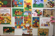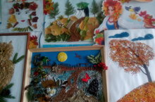 В разновозрастной младшей группе оформили выставку картин «Осень - чудная пора» Картины были изготовлены из фетра.