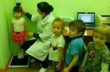 Медицинский кабинет в нашем детском саду мы с ребятами посещаем часто, измеряем рост и вес детей. Все дети с удовольствием по очереди вставали на весы и ростомер .Затем Люция Абдулахатовна объяснила детям зачем нужно мыть руки с мылом и мыть фрукты перед едой. Угостила всех вкусными витаминками .