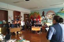 Сегодня среди команд "Умники" и "Грамотеи" провели интеллектуальный турнир.Во время игры проверялись орфографические и пунктуационные грамотности. По рисункам учащиеся угадывали фразеологизмы, объяснили их значения.Победила команда "Грамотеи".