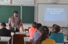 Укучылар “Химия безнең әйләнә-тирәбездә” дигән темага презентация ярдәмендә эзләнү-проект эшләрен якладылар.