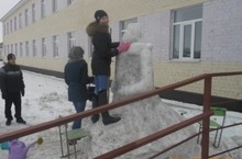 Дәресләрдән соң укучылар мәктәп янында карлы фигуралар ясыйлар.