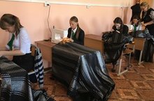 Учащиеся 9 б класса с ОВЗ соединив, в едином творческом процессе трудовое обучение и декоративно-прикладное искусство, сделали проектную работу по изготовлению штор для кабинетов гимназии. -