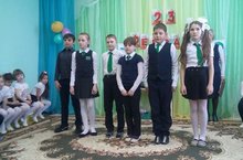 Буген гимназиябезнең башлангыч сыйныф укучылары Ак каен балалар бакчасында барлык әтиләрне Ватанны саклаучылар көне белән тәбрикләделәр .