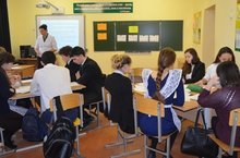 В гимназии проходит месячник военно-патриотической работы. Во время классных часов 8-классники смотрят 10-минутные видеоролики о Великой Отечественной войне.