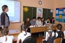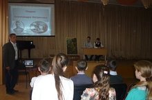 В рамках недели английского языка и истории 7 мая учитель английского языка Исхакова В.Н. провела инсценированное мероприятие «Никто не забыт, ничто не забыто! Nobody is forgotten, nothing is forgotten!» Учащиеся 10-б класса в роли иностранных журналистов задавали вопросы о войне учащимся 8-9 классов. Ответы были не только в форме рассказов, но и в стихах и песнях. Затем посмотрели видеофильм о Дне Победы. -