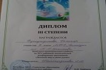 Ученица 9 класса Хуснутдинова Ильсияр стала обладателем диплома III СТЕПЕНИ на XIV районной экологической конференции школьников "Зеленый мир в твоих руках" руководитель Шаймарданова Л М