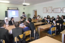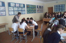 В рамках недели русского языка и литературы, в 8 классе проходил КВН знатоков русского языка. Класс был поделен на 2 команды. Игра закончилась со счетом 57:55.