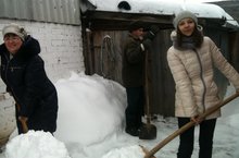 11 Б сыйныфы укучылары Нурислам абыйның ишек алдында кар көриләр. -