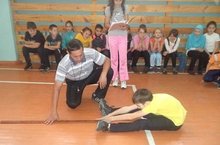 Обучающиеся гимназии сдают нормативы ГТО.Определение гибкости обучающихся. Выполнение наклона тела, вперед сидя на полу. -