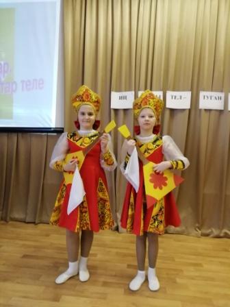 Гимназиядә 20 нче февраль көнне туган тел көненә багышланган “Туган телем – иркә гөлем” исемле әдәби-музыкаль кичә үткәрелде. 5-9 нчы сыйныф укучылары катнашында узган чарада Х. Туфан, Р. Фәйзуллин, Г. Зәйнәшева, Э. Мөэминованың туган тел турында шигырьләре; туган тел, туган җир, әниләр турында җырлар яңгырады. Укучылар татар, рус, чуваш, үзбәк телендә язылган шигырьләр сөйләделәр. Курикова Ольга “Эх, чун” (“Күңелем”) җырын, Саврасова Екатерина ”Юрататоп човаш челхине” (“Чуваш телен яратам”) шигырен башкардылар. Кичә төрле милләт халыклары биюләре белән аралашып барды. .jpg)
