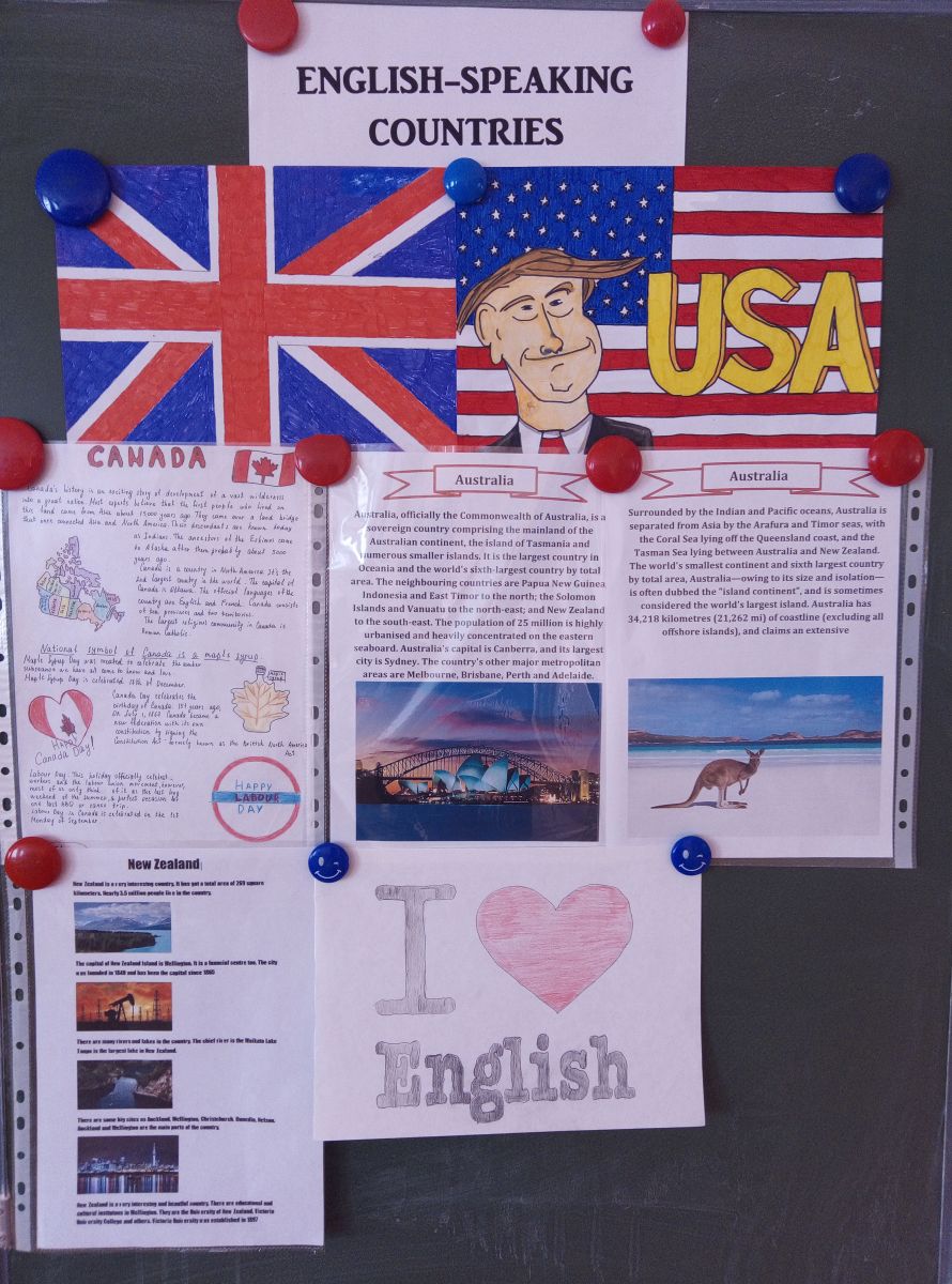 В рамках недели английского языка и истории прошёл конкурс рисунков «Do you know Great Britain?» и конкурс творческих работ «English-speaking countries». Победителям будут вручены грамоты.