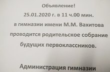 25.01.2020 в 11ч 00 мин в гимназии проводится родительское собрание будущих первоклассников