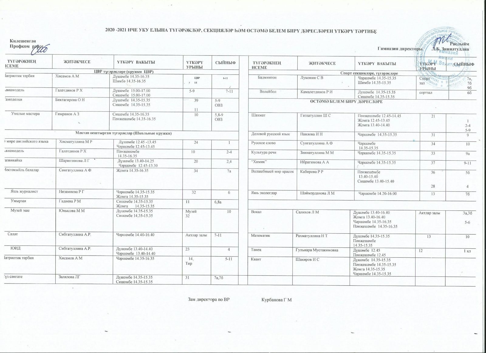 Расписание кружков и спортивных секция (на татарском языке)