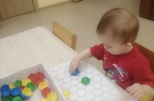 Дети ясельной группы очень любят играть в мозаику. 07.10.2025