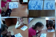 Дети на прогулке любовались красотой зимней природы. Вели беседы с воспитателем, вспоминали произведения и стихи о зиме. А вечером нарисовали зимний пейзаж с помощью раздувания красок на листе бумаги. Рисунки получились красивыми и дети получили удовольствие от выполненной работы.