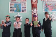 На уроке английского языка, в рамках проектной работы, ученики 2 класса приготовили поздравительные открытки и праздничные головные уборы. К Новому году готовы!