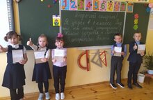 Учащиеся первого класса готовятся к принятию в пешеходы. И сегодня они показали сказку на новый лад "Как колобок учил правила дорожного движения" для учеников второго класса.