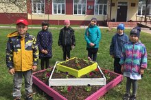 Учащиеся второго класса приняли активное участие по благоустройству школьного сада. Родители разбили клумбу , ребята посадили рассаду цветов.