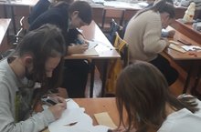 Предновогодние хлопоты. Учащиеся 6-7 кл на внеурочной деятельности по технологии изготавливают вытынанки для украшения окон школы.