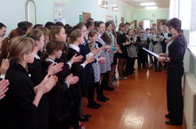 С минуты молчания начался урок в 10 классе 27 января 2016 г,который подготовил Филипов А.А. Ребята отдали дань памяти жителям блокадного Ленинграда и жертвам немецких концлагерей. На урок были приглашены учащиеся начальных классов. Дети слушали историю о маленьком летописце блокадного Ленинграда - Тане Савичевой, передавали из рук в руки скорбное свидетельство ужаса тех дней - копии страниц записной книжки 12-летней Тани со строчками, которые знает весь мир: "Савичевы умерли. Умерли все. Осталась одна Таня". Эти строки - яростное обвинение фашизму.