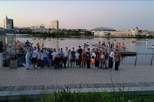 25 участников, 1 наставник, 15 родителей.А в завершение вечера их ждала прогулка на катамаранах по озеру Кабан.