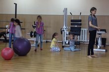 Воспитанники пришкольного лагеря в тренажерном зале спортивно-оздоровительного комплекса"Дельфин" 06.07.2017
