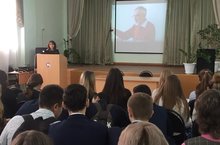 В рамках 100-летия ВЛКСМ прошла встреча учащихся 8-11 классов с представителем Совета ветеранов(пенсионеров) Буинского района Айбетовой Р.Х.