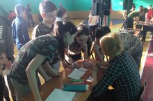 Команду учащихся 7 класса в составе: Дышина И.,Федулова А.,Халиуллиной А.,Мусиной И.,занявших 4 место среди 16 школьных команд в военно-спортивной игре"Разведчики"