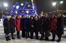 Педагогический коллектив школы на открытии новогодней елки в парке "Молодежный"