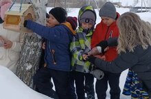 Так же с ребятами начальных классов вышли на территорию школы выложить корм для птиц.